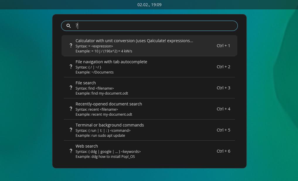 Cosmic bringt eine Handvoll eigener Anwendungen mit – aber natürlich lassen sich auch die Tools anderer Desktops nutzen. Praktisch ist der Launcher, den die Super-Taste öffnet. Der kann Programme oder Dateien finden oder einen Pfad entgegennehmen, um den Dateimanager dort zu öffnen. Mit einem = wird es zum Taschenrechner. Oder ich kann mit vorangestelltem run einen Kommandozeilenbefehl ausführen, die Ausgabe öffnet sich dann in einem Terminalfenster. Was sonst noch geht, zeigt ein eingegebenes Fragezeichen.