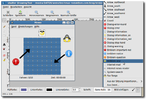 Super ist die Funktion „Bildschirmfoto, Bearbeiten“ (oder <Strg>-<E>): Hier gibt’s am linken Fensterrand ein paar Werkzeuge, darunter auch eins zum Zensieren privater Bereiche auf dem Screenshot. Sehr praktisch ist auch das Drop-down-Menü am unteren Fensterrand über das Sie Markierungen, Pfeile oder Symbole zur Beschriftung des Screenshots einfügen. Ein Klick auf den kleinen Besen entfernt alle Markierungen auf einen Rutsch.